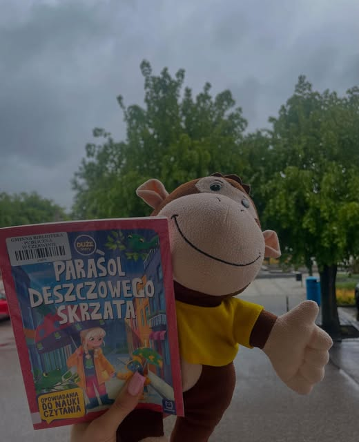 Dziś Tadzio, słysząc krople deszczu stukające o szyby biblioteki, zachęca do sięgnięcia po książkę „Parasol…